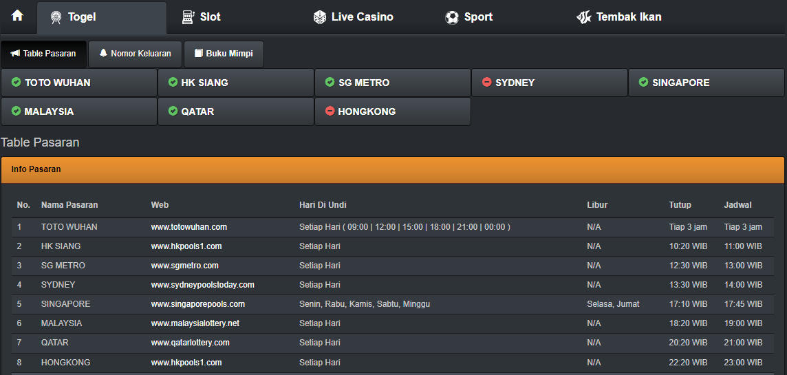 Permainan togel sebenarnya sangatlah mudah, mencocokkan tebakan angka dengan keluaran hasil result dari pasaran togel. Namun, permainan ini membutuhkan insting yang kuat agar bisa menang. Banyak yang menyangkutkan permainan togel dengan mimpi karena ada pemain yang berhasil menang dengan hal tersebut. Maka dari itu, dibuatlah sebuah buku mimpi yang dihubungkan dengan angka – angka untuk pemasangan togel.
